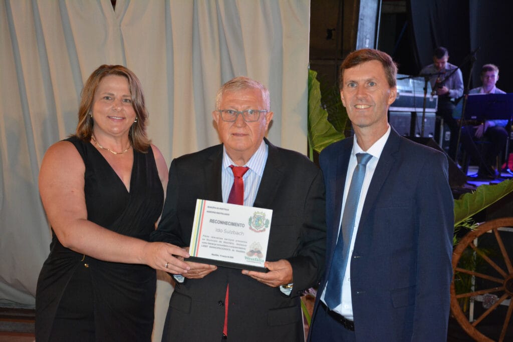 A noite também foi marcada por momentos de emoção com homenagens a integrantes da comissão emancipacionista. Um dos presidentes do grupo, Ido Sulzbach, recebeu placa em reconhecimento aos trabalhos realizados, enquanto Norberto Grave, também membro da comissão, foi agraciado com quadro com fotografia que passará a integrar os espaços da Prefeitura de Westfália. As homenagens foram acompanhadas por forte emoção, com vozes embargadas e lágrimas entre os presentes.
