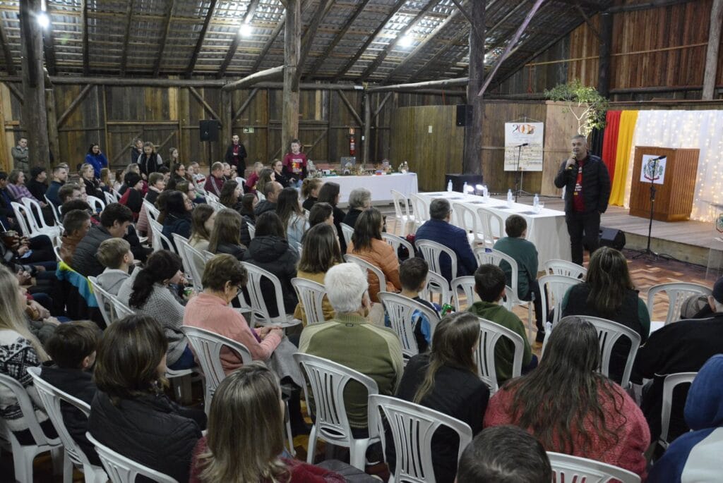 Na noite desta quarta-feira, dia 17 de julho, o Galpão Municipal do Parque de Eventos de Westfália foi palco da celebração cultural em homenagem aos 200 anos da Imigração Alemã no Brasil. A programação reuniu a comunidade westfaliana e promoveu reflexões sobre a influência germânica na região. Em Westfália, o projeto de celebração dos 200 anos da Imigração Alemã no Brasil é idealizado pela Associação Cultural Westfaliana. “É com grande alegria e orgulho que celebramos esta passagem especial e importante. Westfália, por exemplo, oferece uma imersão única na rica herança dos imigrantes alemães, marcos culturais importantes na construção da nossa história”, frisou a presidente da Associação Cultural Westfaliana, Gabriele Schneider Bentancor. O secretário de Educação, Cultura, Turismo e Desporto, Gustavo Sieben, também enalteceu a importância histórica da imigração alemã. “A imigração alemã é peça chave da nossa história. E o envolvimento dos estudantes nas pesquisas foi imenso. Eles mergulharam na história e puderam refletir sobre todo o processo de imigração, que deixou raízes profundas, relembradas até hoje”, considerou Sieben, parabenizando os estudantes pelo engajamento nos concursos. A programação foi aberta, de forma oficial, com a apresentação do Coral Infanto-Juvenil, sob a regência do professor Leandro Ahlert. Os jovens encantaram o público com uma seleção de canções, também interagindo e vibrando com a comunidade. Os pontos altos da noite foram as finais do Concurso de Oratória e Paródias, ambos com a temática “Celebrando os 200 anos da Imigração Alemã no Brasil: de que forma a integração cultural beneficiou a nossa comunidade?”, que tiveram etapas preliminares na Escola Municipal de Ensino Fundamental (EMEF) Vila Schmidt. Os jurados da noite, nos dois concursos, foram: Lucas Leandro Brune, Marcelo Brentano, Lucas Eduardo Grave, Roseli Hetzel Kussler e Luiz Gustavo Kroth. O Concurso de Oratória, primeira final da noite, contou com a participação de oito estudantes de 8º e 9º Ano. Foram avaliados critérios como voz, conteúdo, apresentação, tempo e harmonia. Os melhores da categoria foram: Natieli Monique de Oliveira Saueressig (4min06seg) – 1º lugar; Kamilly de Paula da Rosa (4min25seg) – 2º lugar; e Kétlin Luise Maurer Pott (3min32seg) – 3º lugar. O Concurso de Paródias, outro destaque da noite, contou com sete apresentações criativas de alunos do 6º e 7º Ano. As paródias, relacionadas ao tema da imigração, trouxeram momentos de descontração e alegria, demonstrando o talento e a criatividade dos jovens estudantes. Nesta categoria, os melhores foram: Betina Horst Machado e Flávia Sieben, com a paródia “Imagine” – 1º lugar; Henrique von Mühlen, com a paródia “Hino da Imigração” – 2º lugar; e Agatha Sofia Klein Agatti e Djéssica Schneider, com a paródia “Imigração” – 3º lugar. Todos os finalistas receberam certificados e medalhas em reconhecimento ao seu esforço e dedicação. Os melhores colocados foram agraciados com vale-prêmios e troféus. A celebração dos 200 anos da Imigração Alemã no Brasil segue inspirando a comunidade a valorizar suas raízes e outras programações culturais, dentro do projeto idealizado pela Associação Cultural Westfaliana, estão previstas para o decorrer do ano. Memorial 200 Anos da Imigração Alemã no Brasil Durante a programação cultural, ainda houve a divulgação e premiação dos quatro melhores trabalhos do Concurso Memorial dos 200 anos da Imigração Alemã no Brasil. As maquetes inscritas, mais de 50 no total, foram avaliadas já no mês de maio pela comissão julgadora, formada por Lucildo Ahlert, Jucimar Docena, Andreas Hamester, Gelson Marmitt e Guilherme Blume. Na ocasião, os dez autores dos melhores projetos foram reconhecidos com certificados e medalhas. Já os quatro melhores receberam troféu e vale-prêmios. Foram eles: Gabriela Haas Wiprich (5º Ano da EMEF Bandeirantes) – 1º lugar; Flávia Sieben (7º Ano da EMEF Vila Schmidt) – 2º lugar; Lucas Alberto Grimm Horst (5º Ano da EMEF Bandeirantes) – 3º lugar; e Gabriele Luigi Bortolini (8º Ano da EMEF Vila Schmidt) – 4º lugar. A maquete vencedora servirá de inspiração para a construção de um memorial, celebrando de forma permanente a herança alemã.