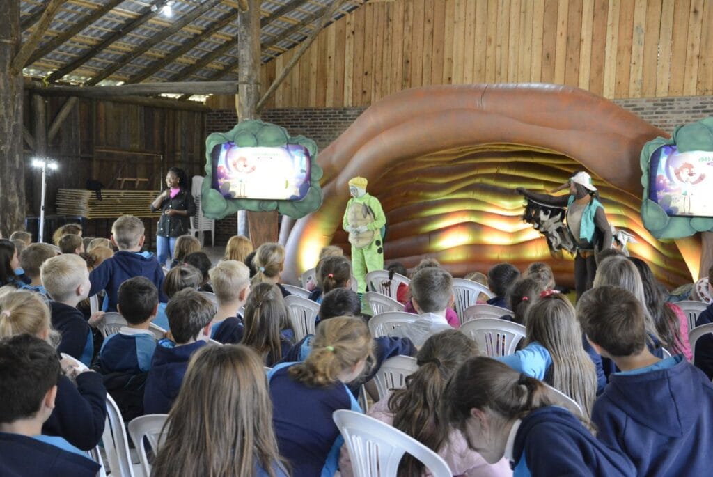Em uma programação que uniu diversão, aprendizado e sustentabilidade, os alunos da Educação Infantil e dos Anos Iniciais do município de Westfália tiveram a oportunidade de assistir à peça teatral “João Ambiente é uma Peça”. Realizada na tarde de terça-feira, dia 02 de julho, no Galpão Municipal do Parque de Eventos, a apresentação encantou as crianças ao trazer à vida a história de João Ambiente, um pássaro joão-de-barro humanizado, e sua amiga Teca, uma pequena tartaruga humanizada. A narrativa envolvente e educativa de João Ambiente e Teca destacou a importância do descarte correto do lixo e da reutilização de materiais, além de ensinar e estimular práticas de economia de água e energia. Através de interações com a plateia, a peça conseguiu envolver e entreter as crianças, promovendo a conscientização ambiental de maneira lúdica e colorida. Na abertura, o secretário de Educação, Cultura, Turismo e Desporto, Gustavo Sieben, parabenizou a equipe pela iniciativa e agradeceu por incluírem Westfália no roteiro de apresentações. “Somos gratos por trazerem à Westfália este momento especial e de reflexão. Uma temática que precisa ser abordada entre as nossas crianças com frequência, pois o futuro depende das ações delas”, enalteceu. Conforme o produtor executivo, coordenador artístico e diretor técnico Elias da Rosa, a peça busca mostrar às crianças que cuidar do planeta pode ser, acima de tudo, divertido. “A mensagem que passamos é de que todos podem contribuir para a preservação do meio ambiente com pequenas atitudes diárias”, completou. Um dos diferenciais da apresentação foi a inclusão e acessibilidade garantida a todos os públicos. Toda a peça foi traduzida em Língua Brasileira de Sinais (Libras), permitindo que crianças surdas ou com deficiência auditiva também pudessem desfrutar da experiência. “João Ambiente é uma Peça” segue levando sua mensagem de sustentabilidade e consciência ambiental para outras cidades e escolas. Em Westfália, a apresentação foi assistida por alunos da Educação Infantil e Anos Iniciais das Escolas Municipais de Ensino Fundamental (EMEFs) Bandeirantes, de Linha Frank; Olavo Bilac, de Linha Berlim; Rio Branco, de Linha Paissandu; e Vila Schmidt, do Centro. Também prestigiaram a peça as crianças da Educação Infantil da Escola de Educação Infantil (EEI) Mônica.