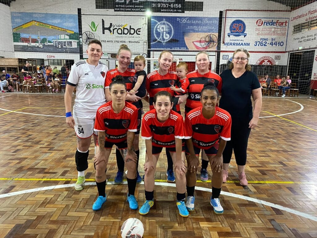 Na noite de quinta-feira, dia 14 de novembro, o Flamengo Futebol Clube recebeu a quinta rodada do XIII Campeonato Municipal de Futsal de Westfália, com partidas que alternaram entre placares elásticos e duelos intensos. A competição segue a todo vapor, e as equipes seguem determinadas para garantir a vaga para a grande final. No Feminino, a equipe do Flamengo brilhou novamente, goleando o Palmeiras por um placar de 7 a 1. Já no Veterano, o Juventude mostrou sua força ao aplicar uma goleada de 10 a 1 sobre o Flamengo. Pela categoria Força Livre, o Fluminense superou a Luminatec por 6 a 3 em um confronto equilibrado, enquanto que o Palmeiras venceu o Flamengo por 5 a 2. O XIII Campeonato Municipal de Futsal segue nesta quinta-feira, dia 21 de novembro, com a realização da sexta rodada no Esporte Clube Juventude, em Linha Berlim. Serão duas partidas semifinais, pelo Feminino e Veterano, e duas classificatórias, ambas pelo Força Livre. A rodada inicia às 19h30min. Destaques individuais Como tradição nesta edição, os atletas que mais se destacaram em cada partida foram reconhecidos. Foram eles: Feminino: Nethelin Raissa Cordolino, do Flamengo; Veterano: João Schröer, do Juventude; Força Livre: Luís Fernando Ahlert, do Fluminense; Força Livre: Maiquel Kalkmann, do Palmeiras. 5ª rodada – 14/11 – Flamengo Futebol Clube (Centro) Categoria Confronto Feminino Flamengo 7 x 1 Palmeiras Veterano Flamengo 1 x 10 Juventude Força Livre Fluminense 6 x 3 Luminatec Força Livre Flamengo 2 x 5 Palmeiras 6ª rodada – 21/11 – Esporte Clube Juventude (Linha Berlim) Categoria Confronto Feminino Palmeiras x Fluminense (semifinal) Veterano Flamengo x Palmeiras (semifinal) Força Livre Flamengo x Fluminense (classificatória) Força Livre Palmeiras x Juventude (classificatória)