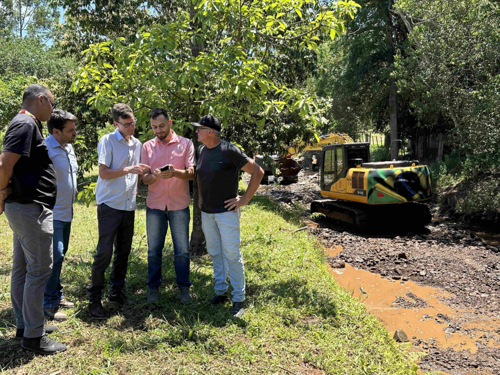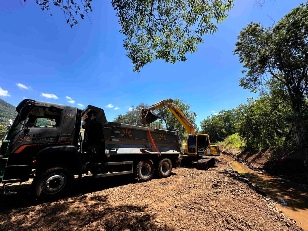 As máquinas realizam a limpeza dos trechos enquanto caminhões fazem o transporte dos sedimentos até a saibreira. O prefeito César Juliano Bloemker acompanhou o início dos trabalhos no trecho do Arroio Schmidt no Bairro Bela Vista, aos fundos da Associação Cultural e Esportiva Fluminense. Segundo ele, a ação é essencial para a segurança da comunidade. “Esse trabalho permite melhor vazão do curso d’água, prevenindo alagamentos e evitando que o arroio invada ruas e residências de moradores próximos”, destacou.