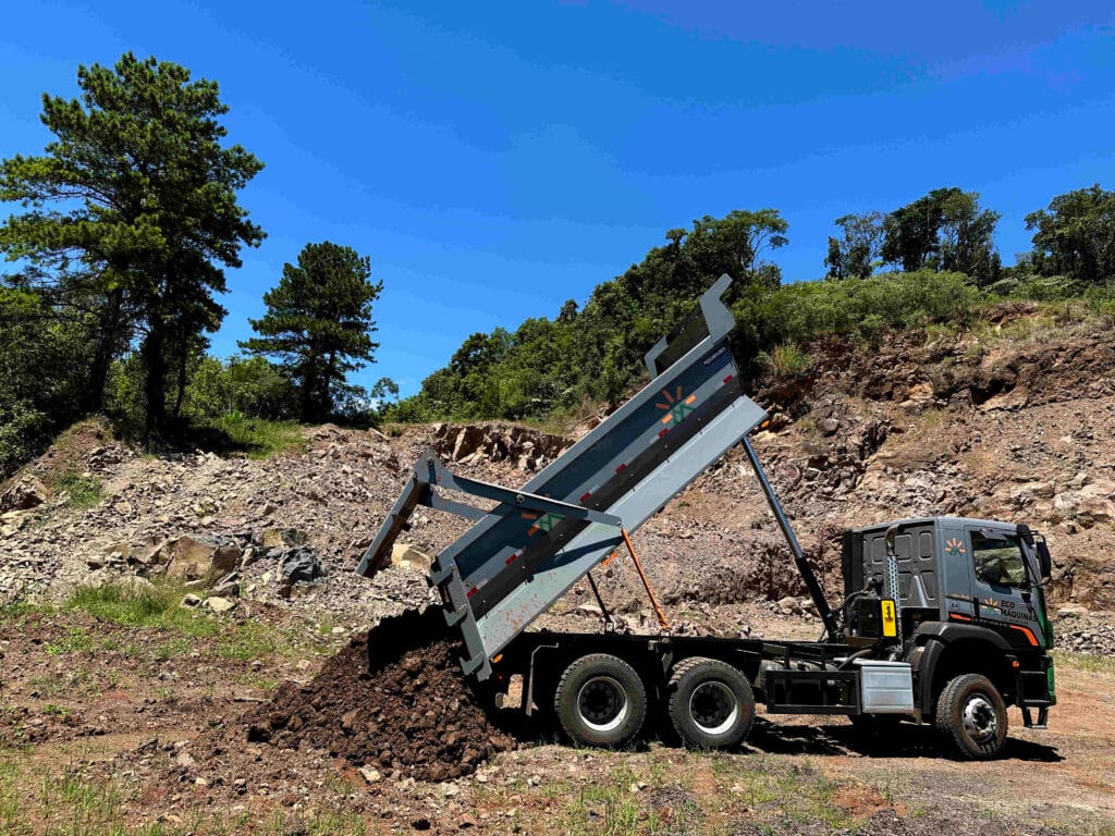Material retirado do leito está sendo transportado para a saibreira licenciada do município
