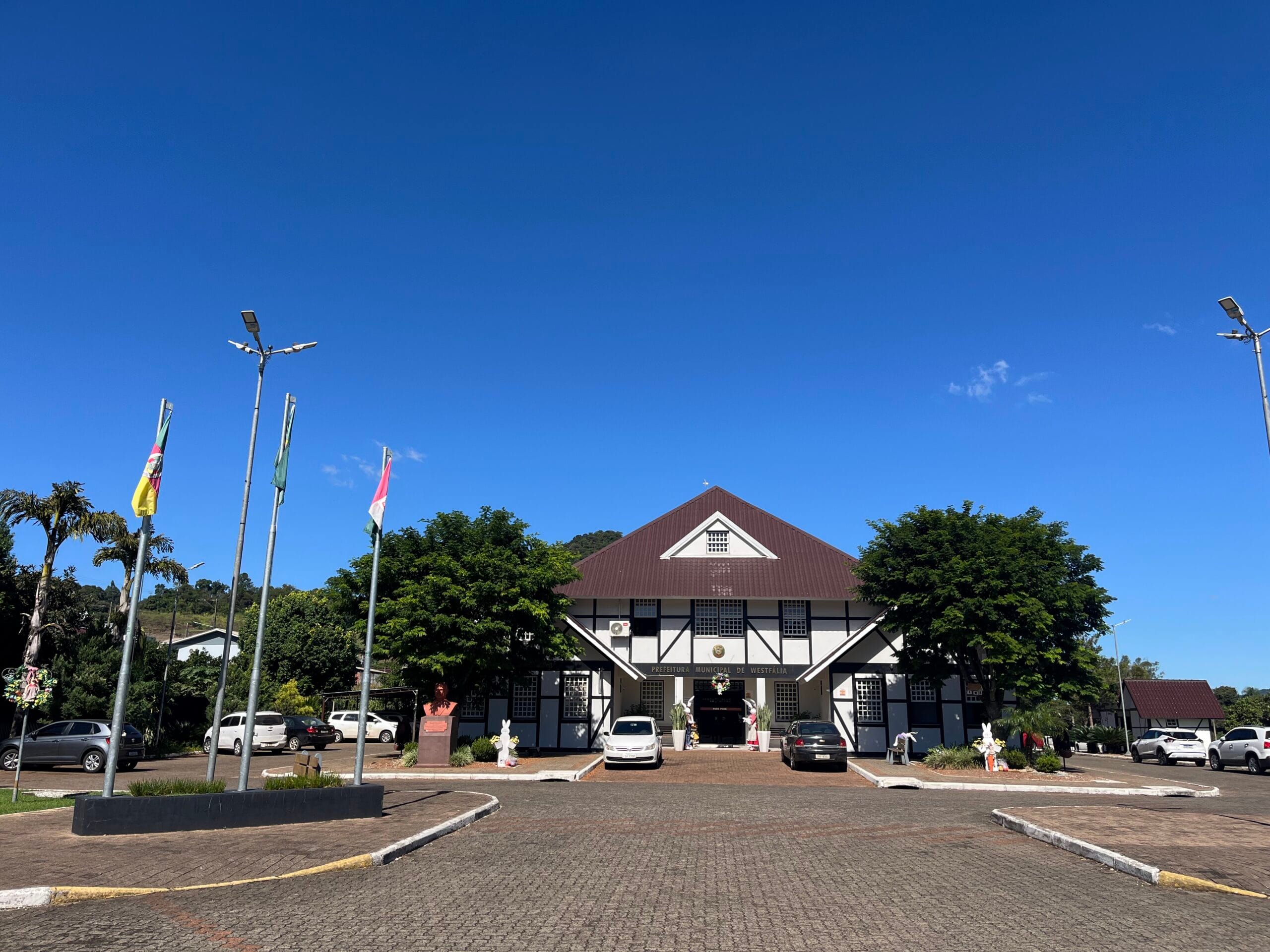 A Prefeitura Municipal de Westfália é o centro administrativo do município e um importante ponto de referência para moradores e visitantes. O prédio se destaca por sua arquitetura em estilo enxaimel, característica marcante da colonização alemã na região, evidenciando estruturas aparentes em madeira, formas tradicionais e um visual que preserva a identidade cultural e histórica de Westfália.